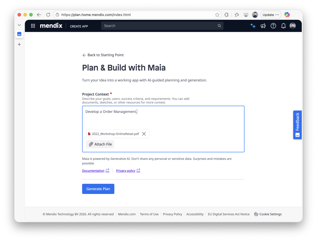 เพื่อแก้ปัญหานี้ เราขอแนะนำ Maia Plan — เครื่องมือวางแผนที่ขับเคลื่อนด้วย AI ใน Mendix Portal ที่แปลงไอเดีย, project brief, และการสนทนาเบื้องต้น ให้กลายเป็นแผนการส่งมอบที่มีโครงสร้างชัดเจนและพร้อมลงมือทำ