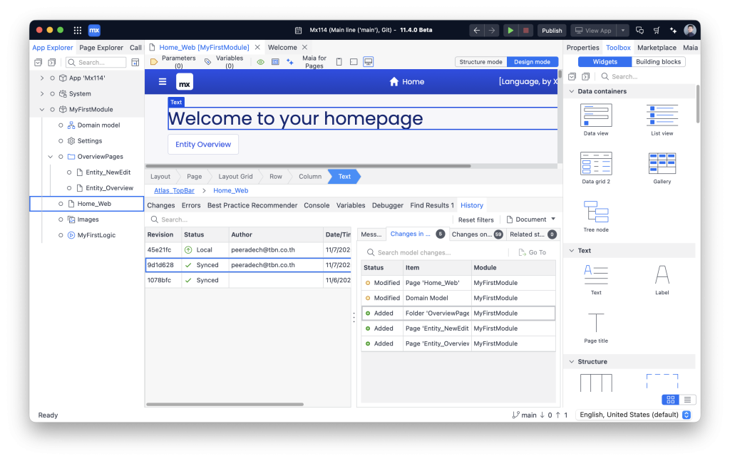 ในอีกไม่กี่เดือนข้างหน้า เราจะมุ่งสู่การปล่อยฟีเจอร์นี้เป็น General Availability (GA) และมีแผนจะเพิ่มตัวกรองตามวันที่ (date filter) และคำสั่งอำนวยความสะดวกใน context menu เช่น การสร้าง branch อย่างรวดเร็ว มองไปไกลกว่านั้น roadmap ของเรายังรวมถึงความสามารถในการ เปรียบเทียบความเปลี่ยนแปลงย้อนหลัง (historical diffing) เพื่อให้คุณเห็นความเปลี่ยนแปลงในเอกสารจริง เช่น การแก้ไข activity ใน microflow หรือ entity ใน domain model ได้อย่างชัดเจน
