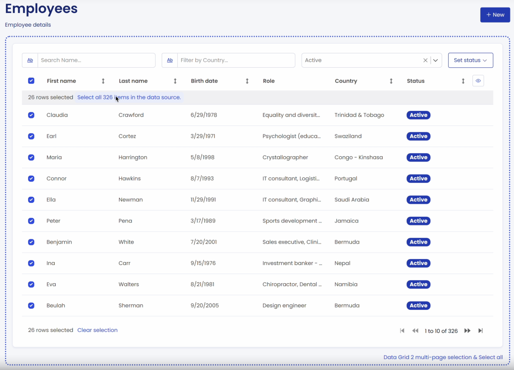 ตอนนี้ Data Grid 2 รองรับการเลือกข้อมูลแบบ “Select All” ที่ทำงานกับ ทั้งชุดข้อมูลทั้งหมด ไม่ใช่แค่เฉพาะรายการในหน้าปัจจุบันอีกต่อไป